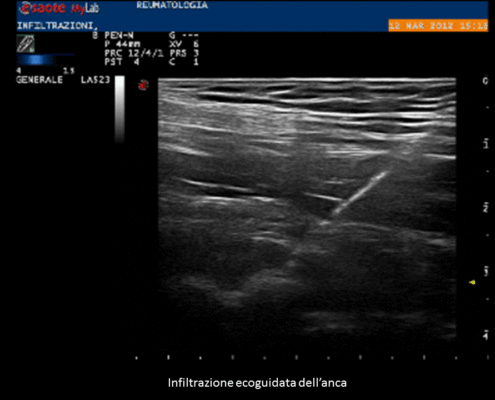 Ciò è particolarmente vero per l’anca, dove si è visto che senza guida ecografica solo una minima parte delle infiltrazioni arriva realmente a destinazione.