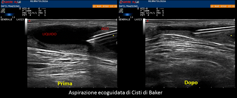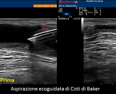 – Artrocentesi (aspirazione di liquido articolare) e drenaggi di raccolte fluide in genere (borse, guaine tendinee, cisti…)
